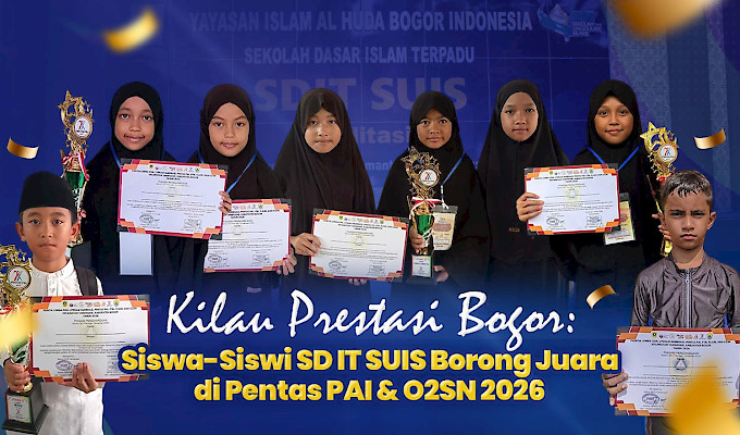 BOGOR – Hari Kamis, 2 April 2026 menjadi momen bersejarah bagi keluarga besar SDIT SUIS salah satu unit pendidikan Yayasan Islam Al Huda Bogor. Para duta terbaik sekolah berhasil menunjukkan taringnya dengan meraih berbagai gelar juara pada ajang Pentas PAI dan O2SN tingkat SD se-Kecamatan Tamansari, Bogor.